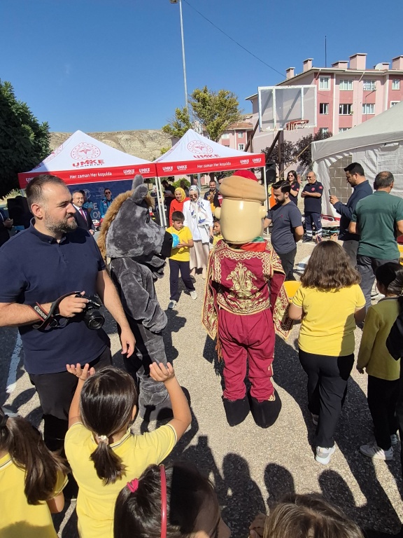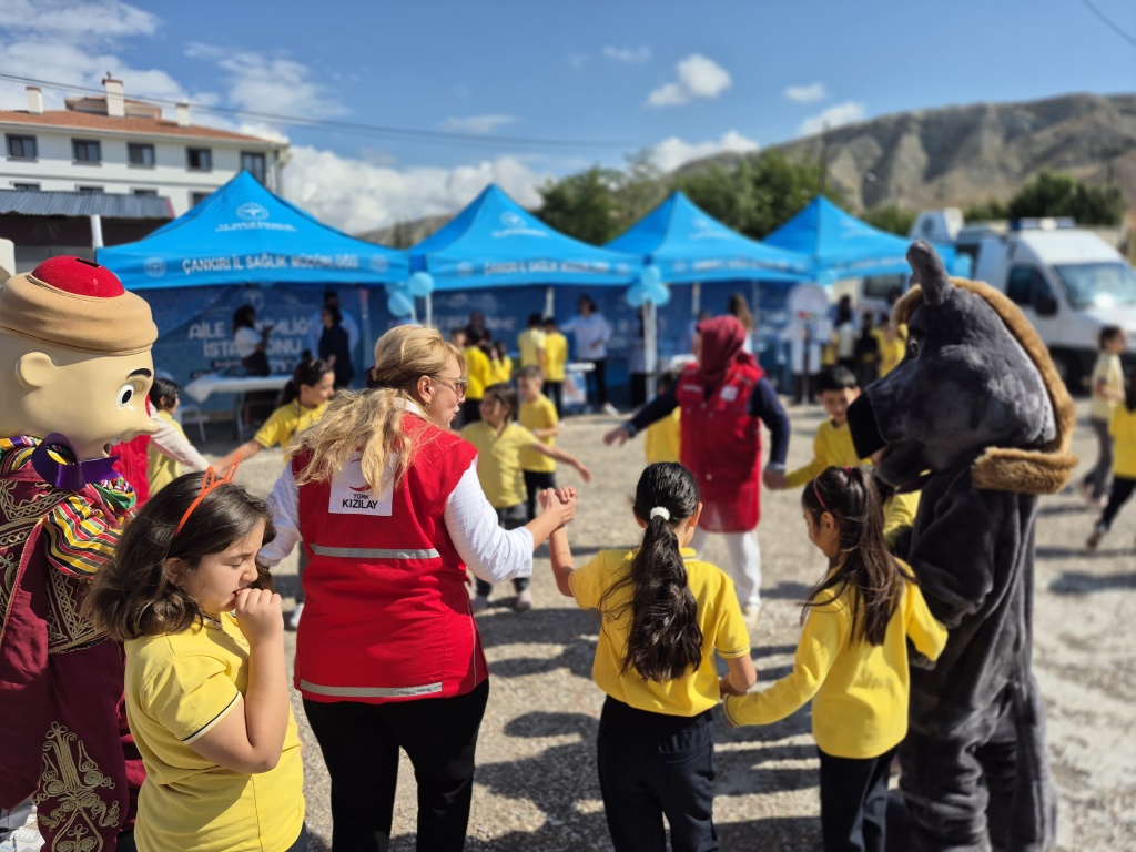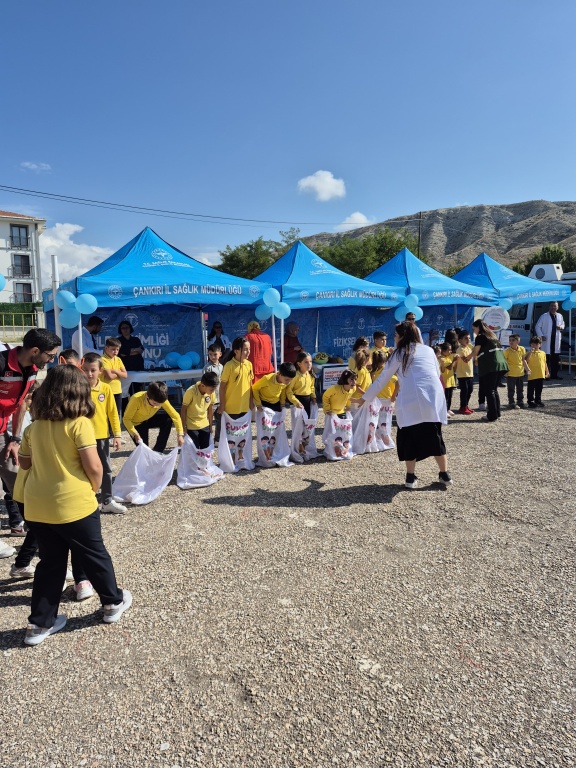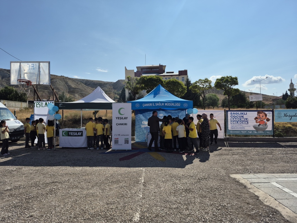 Okulumuzda İl Sağlık Müdürlüğünün hazırladığı 3-9 Eylül Halk Sağlığı Haftası etkinliklerinin ana teması olan ''Sağlıklı Çocuk,Sağlıklı Gelecek'' programı gerçekleşti. Etkinliğe, Valimiz Sayın M. Firat Taşolar, İl Milli Eğitim Müdürümüz Sayın Muammer Öztürk, İl Sağlık Müdürümüz Sayın Yunus Emre Bulut katılım sağladı. Çankırı'nın kültürel simgelerinden Keloğlan ve Karakaçan kostümlü karakterler, hem şehrimizin değerlerini yansıttı hem de çocuklara keyifli anlar yaşattı. Öğrencilerimiz çeşitli oyunlar oynarken, kurulan stantlarda sağlık konusunda bilgilendirmeler yapıldı ve oyunlarda hediyeler dağıtıldı.